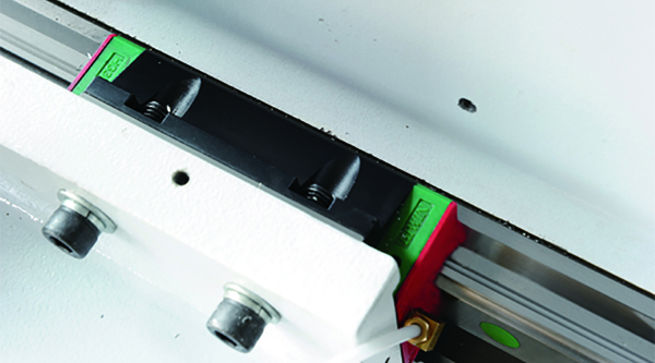 ◆Y軸采用四個(gè)臺灣上銀HGW35H加長重型滑塊,其他開料機(jī)廠家大多數(shù)使用30普通滑塊,更甚者使用25滑塊。