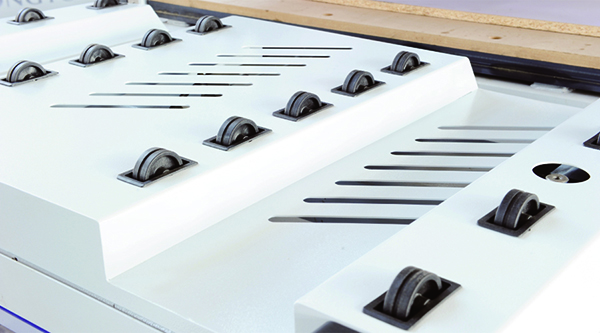 ◆上料滾輪裝置,減小板材與臺面的摩擦,保護(hù)板材表面。