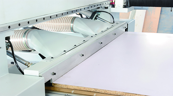 7.      推料裝置:簡捷高效,推料同時(shí)二次吸塵,確保臺面無粉塵;