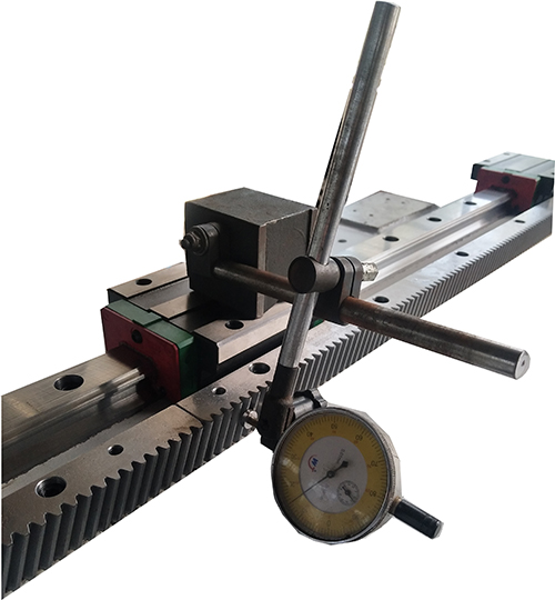 齒條安裝時(shí),均采用千分表檢測(cè)齒條面與導(dǎo)軌的平行度,每臺(tái)機(jī)床做好詳細(xì)精度檢驗(yàn)記錄
